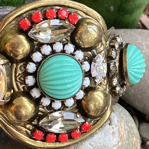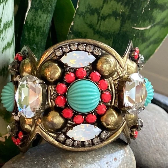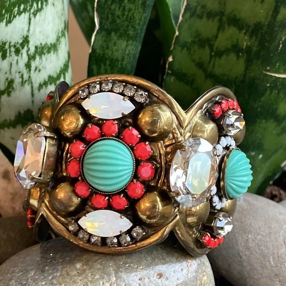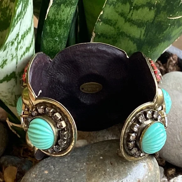 Anton Heunis Vintage phone turquoise Carl rhinestone an opal bracelet with leather interior