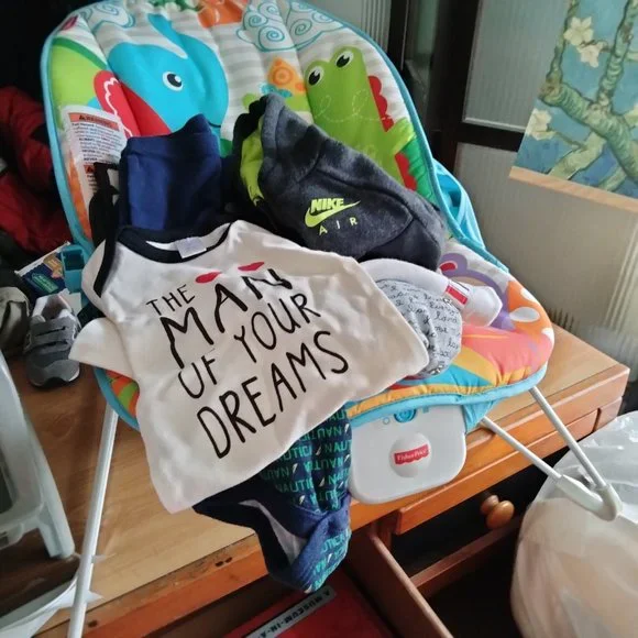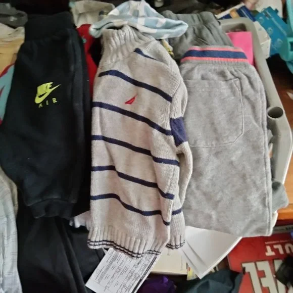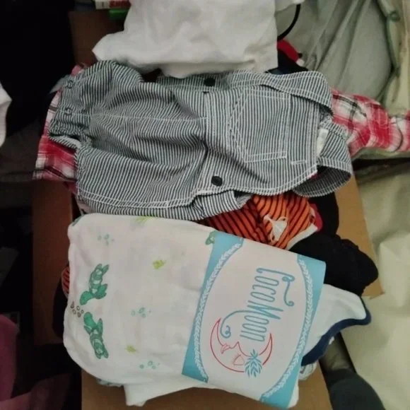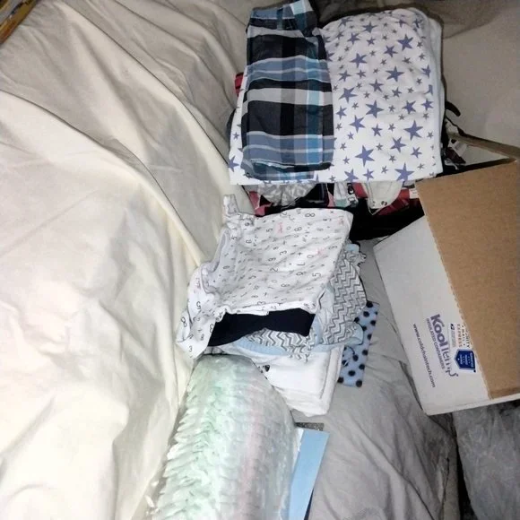 Boxes of baby boys clothing newborn-4T most with tags clean blankets, socks, outfits. Bottles Hats.books.Take it all$70