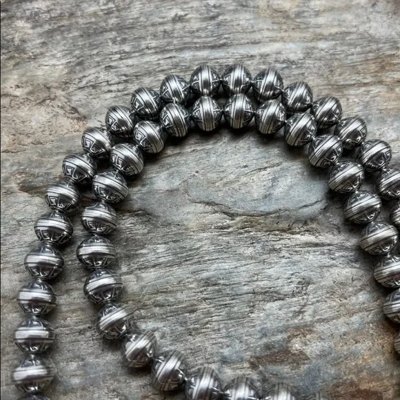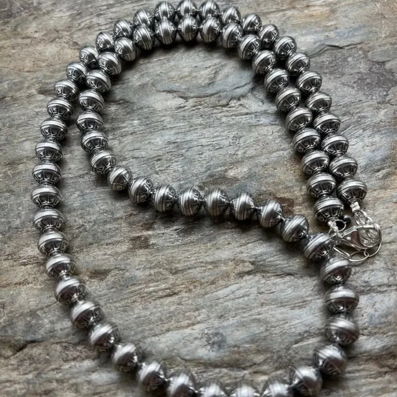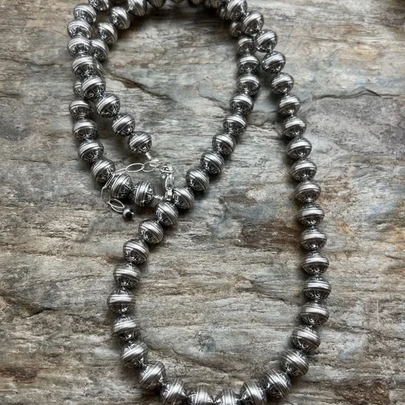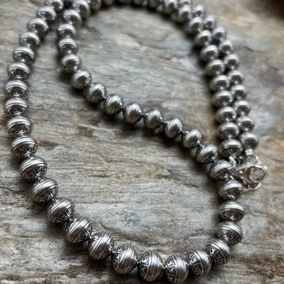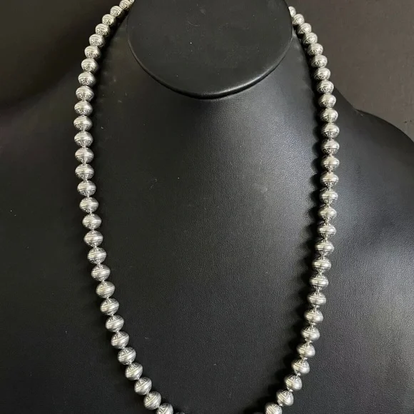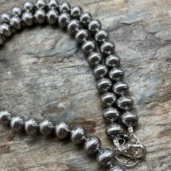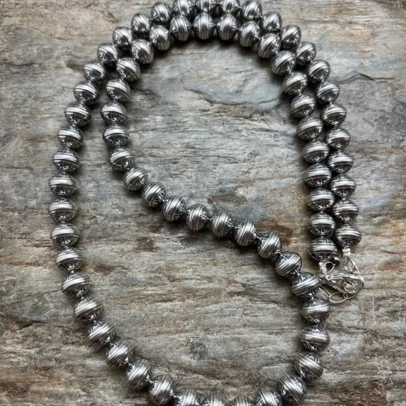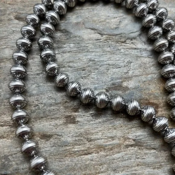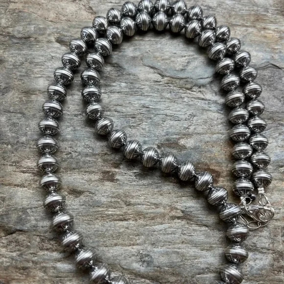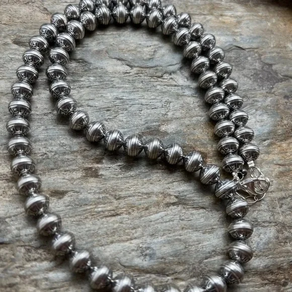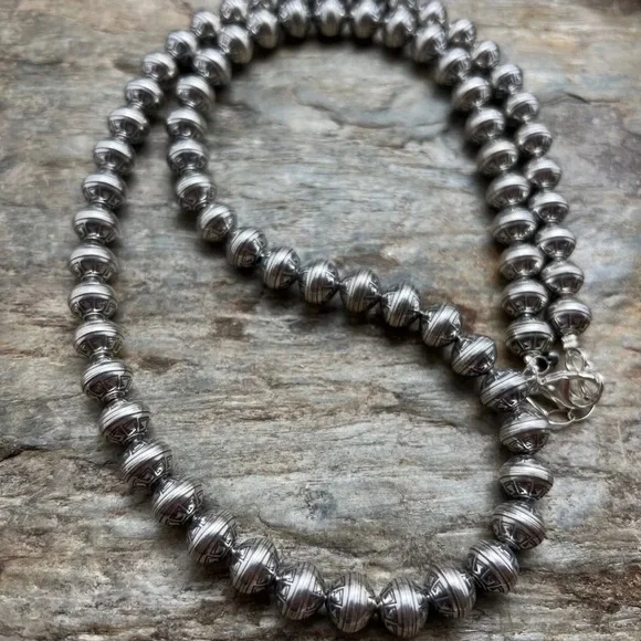 Sterling Silver 10mm Stamped Pearls Bead Necklace. 26 inchBest Offers Accepted!