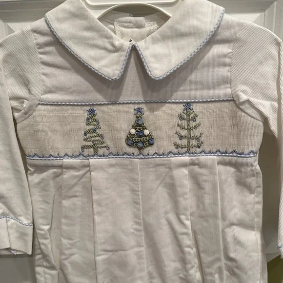 Super cute white corduroy Christmas outfit for boys. Great for the holidays smocked detailing.