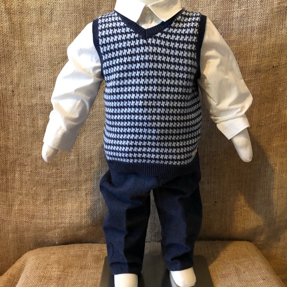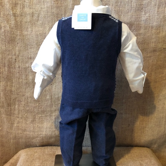 Janie & Jack Outfit Navy 3 NWT Pieces 12-18mCotton Dress Shirt pale blue stripes Cotton flannel pants linedCotton Sweater Vest