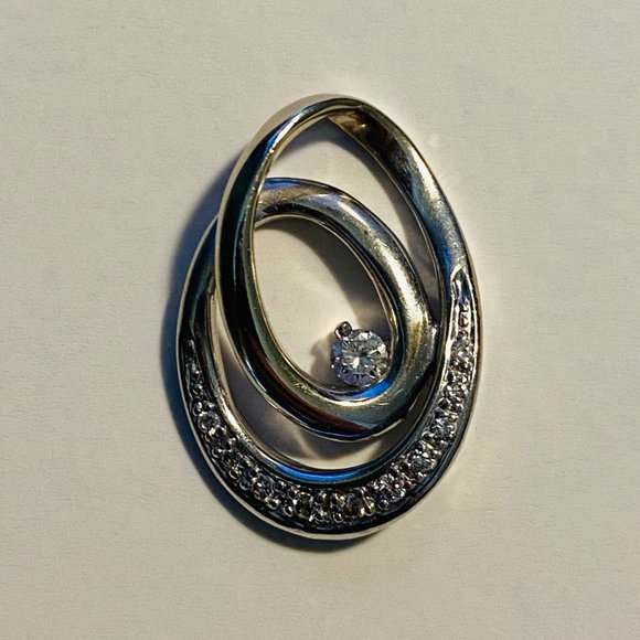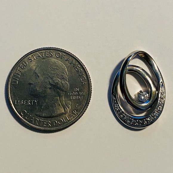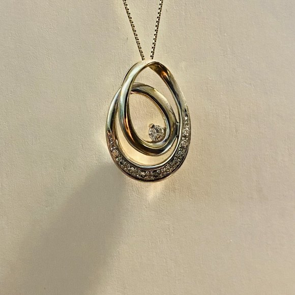HELZBERG DIAMONDS 14KW WHITE GOLD SWIRL PENDANT WITH 1/5CTW DIAMOND ACCENTS.CHAIN NOT INCLUDED.