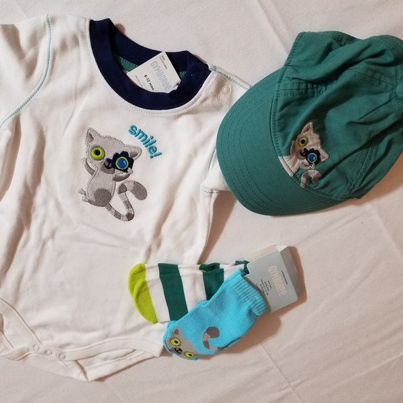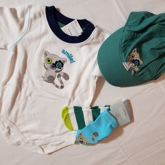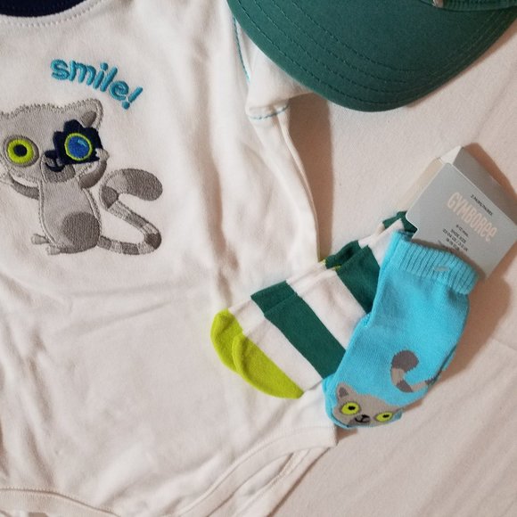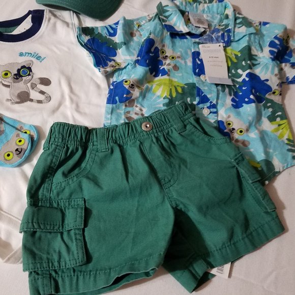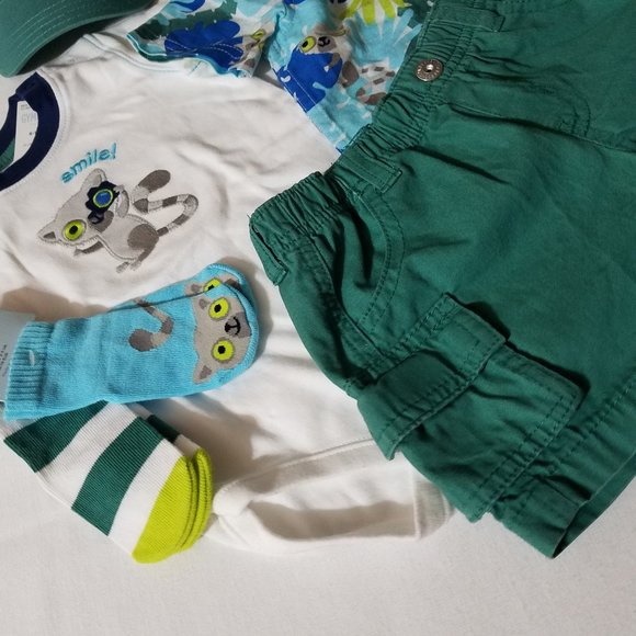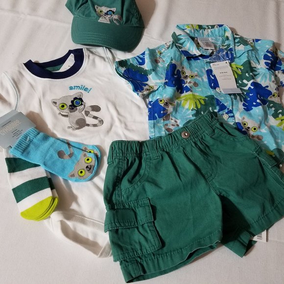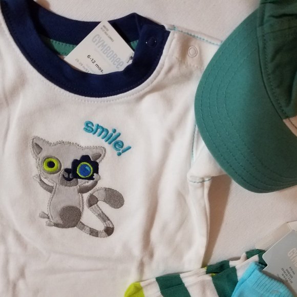 Gymboree Lemur Lagoon size 6-12 month NWT hat, SOCKS, shorts, shirt& Bodysuit.