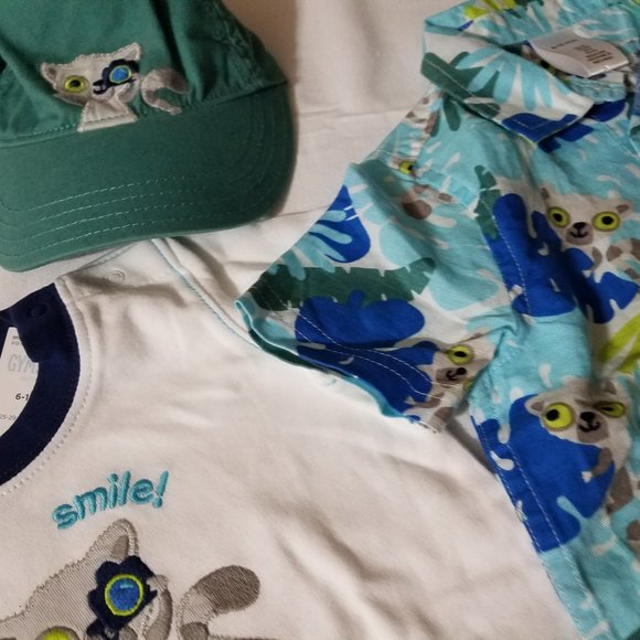 Gymboree Lemur Lagoon size 6-12 month NWT hat, socks, shirt, shorts & Bodysuit. Located A5