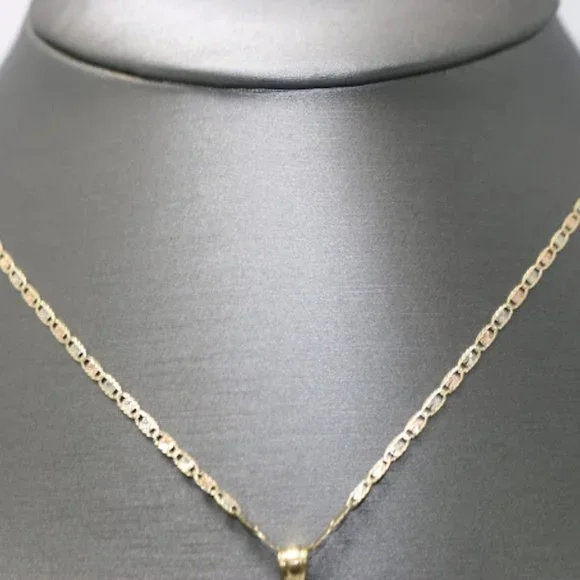 14kt Tri-tone Virgin Mary 15 Anos Engraved Pendant with 14kt Tri-tone Hollow Trace ChainPendant Thickness22mmPendant Weight 2.8gPendant Carat14ktChain Weight1.9gChain...