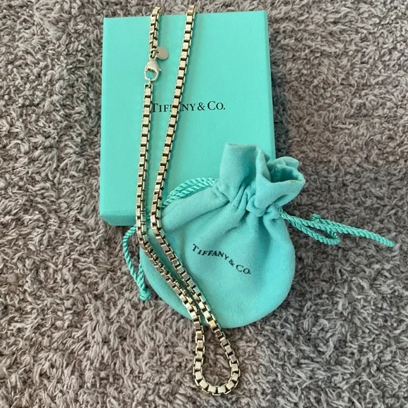 Classic Tiffany’s 925 Sterling Silver Box Link Necklace. 18” length, 36 grams of sterling silver. Casual yet elegant, great for everyday.