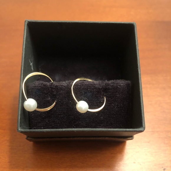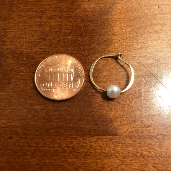 NWOT freshwater pearl hoop earrings in 14 KT yellow gold.