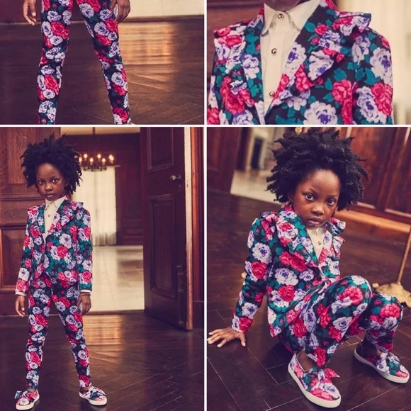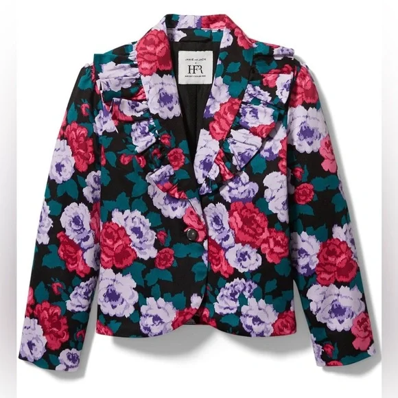 Janie and Jack x Harlem Fashion Row (HFR) Children’s Collection - Floral 2-Piece Blazer and Pant Suit. Blazer has a fun ruffled-collar with a single/button front closure. The...