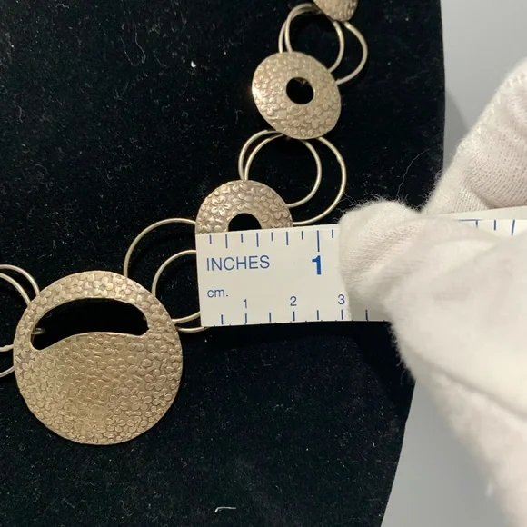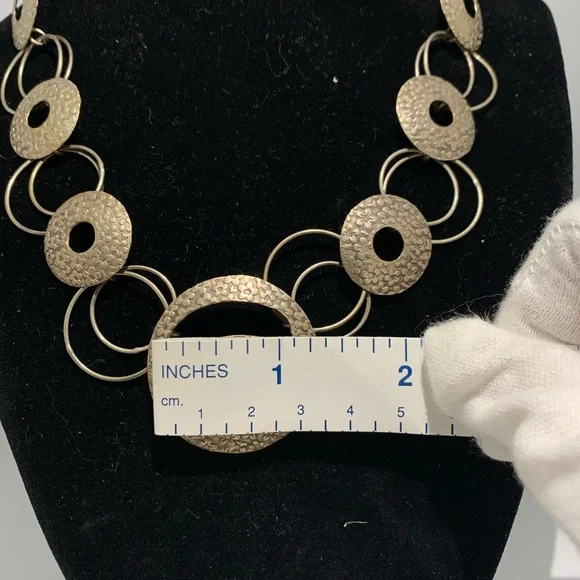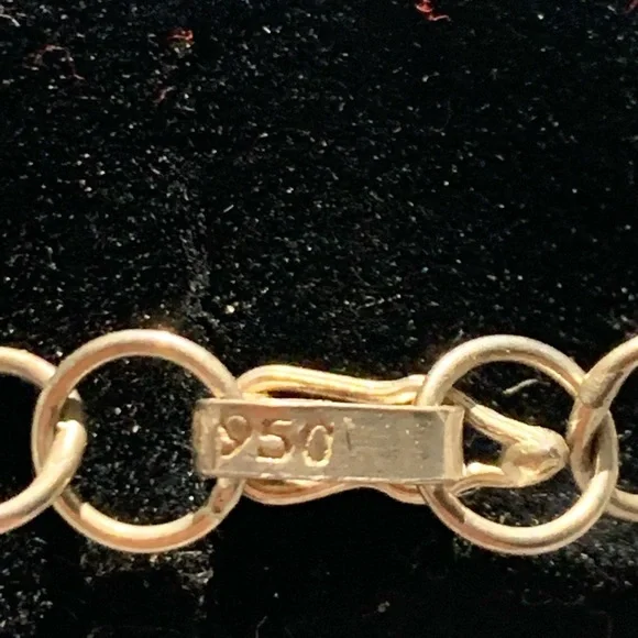 Check out my other listings and ask about bundle deals!Modern Inca style 950 Stamped Solid Silver Necklace. 16in total length. 26.34 total weight.