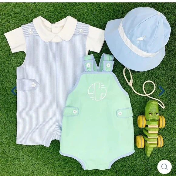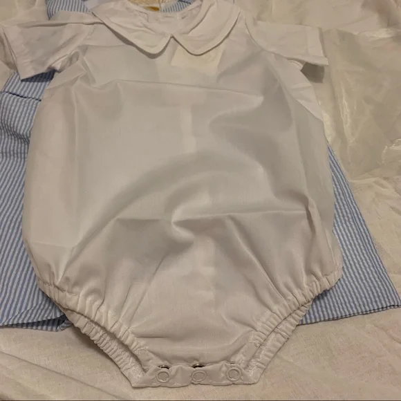 TBBC buckhead blue seersucker jon jon and white collared onsie. NWT 18/2…