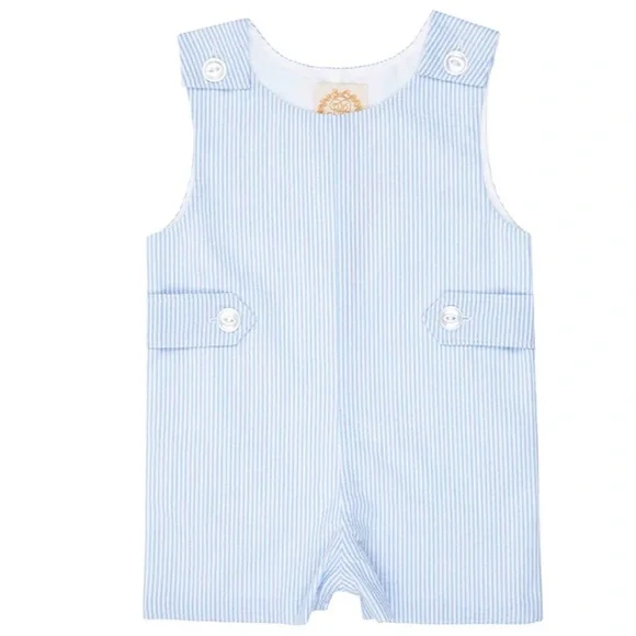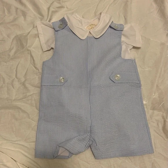 TBBC buckhead blue seersucker jon jon and white collared onsie. NWT 18/24 months