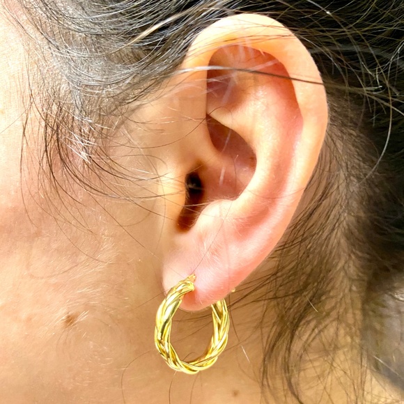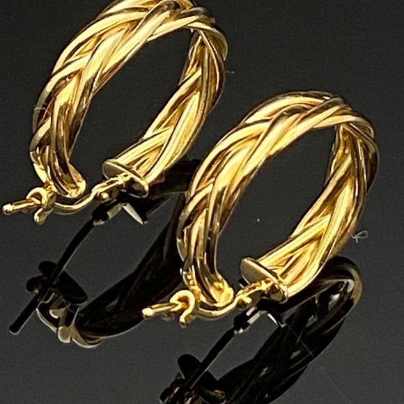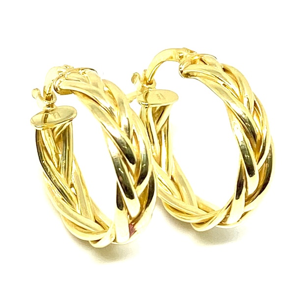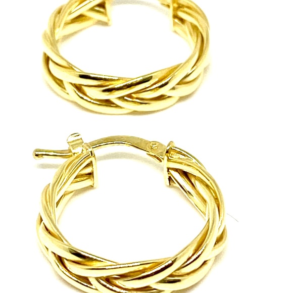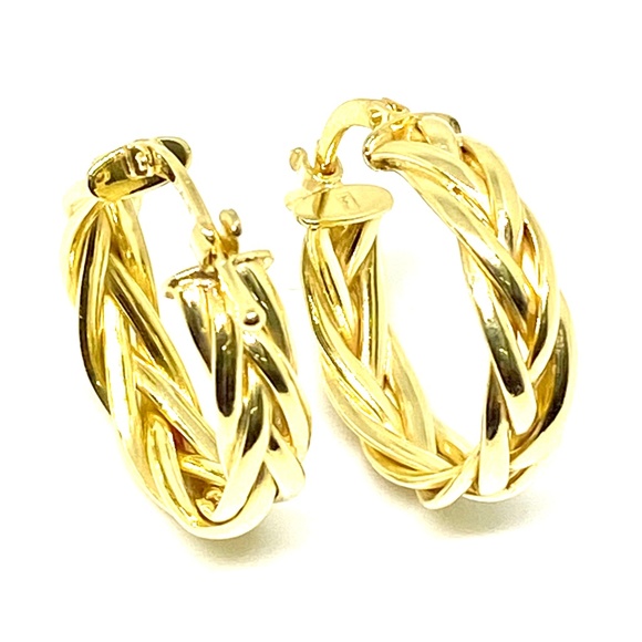 14K Italian Yellow Gold Braided Hoop Earri…