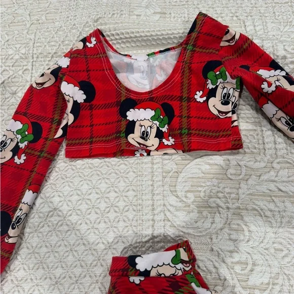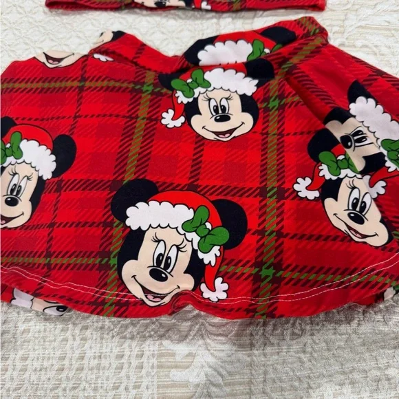 Adorable Disney kids matching set featuring a vibrant red plaid design with beloved character prints. Perfect for festive occasions and everyday wear.
