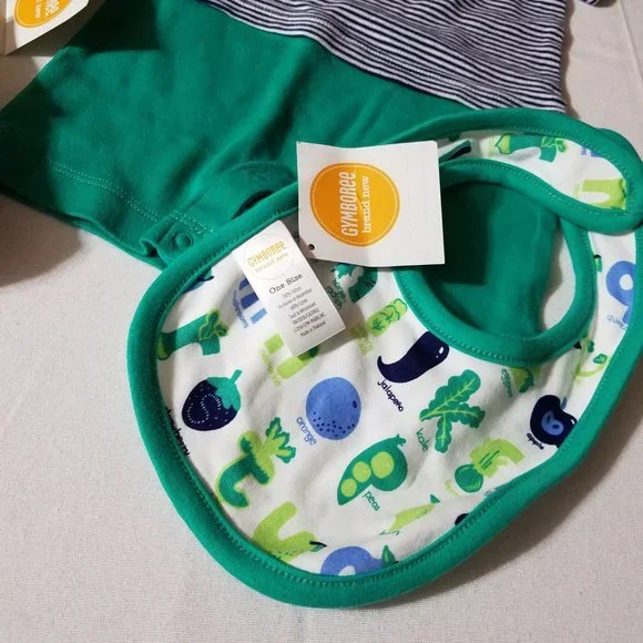 Gymboree Newborn Essentials Pea 3-6 Month Romper Bib & rattle, 0-3 socks NWT set. Located A15