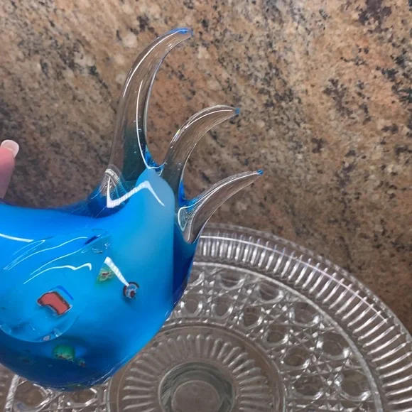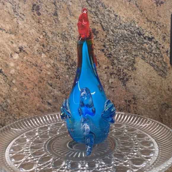 Robert William Rooster Murano Glass Art Blue