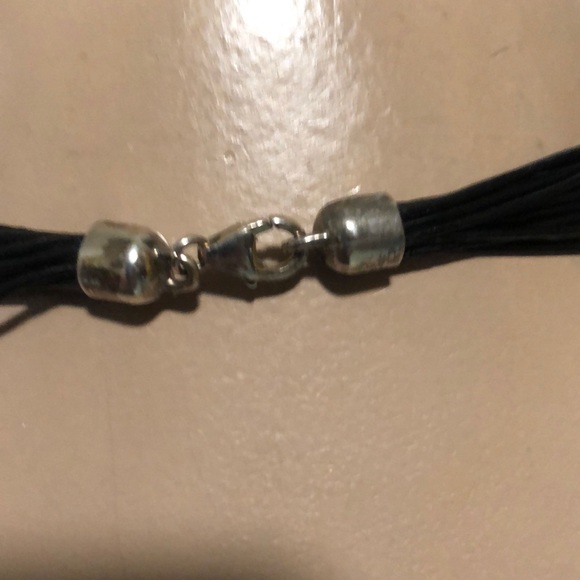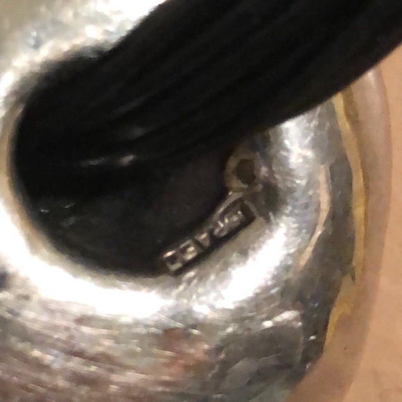 Gorgeous Mod silver circular pod with looping multi strand leather cords necklace. Made in Israel 100% silver 925. Designer unknown very Elsa peretti ,Paloma Picasso for Tiffany&co looking. Could be designer unknown.