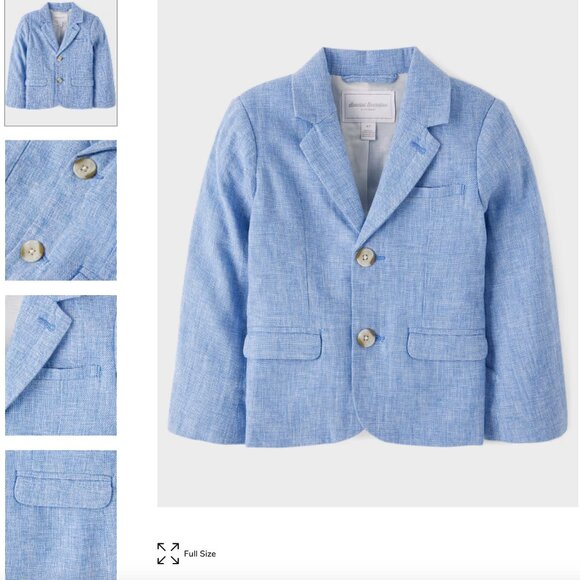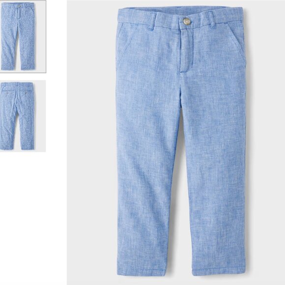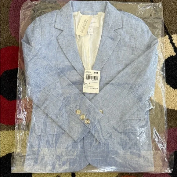 Stylish light blue boy’s suit set perfect for any occasion, new with tags from Gymboree. Linen-cotton blend, very lightweight and comfortable. Both the blazer and pants are fully lined, and the pants have internal buttons / waist tab to adjust the waist.Purchased for family event, but it’s just too small for my kiddo, so unworn.Perfect for spring and summer special occasions.Size info from Gymboree for size 8, boys:Height: 49 1/2 - 52 1/2"Weight: 58 - 68 lbs.Waist: 23 1/2 - 24 1/2"Inseam: 23 1/2 - 24 1/4"