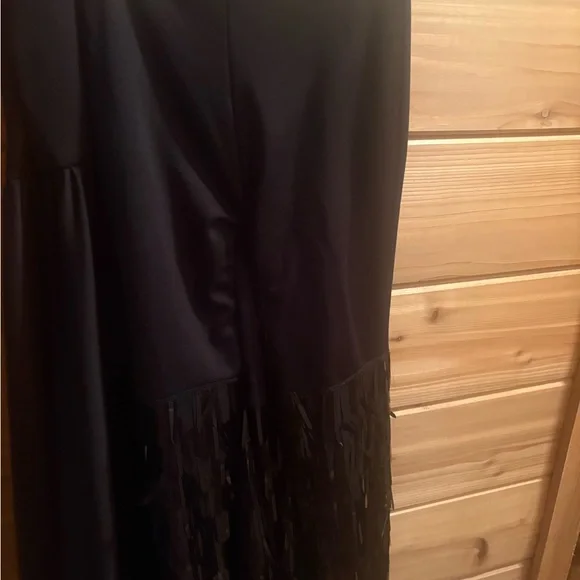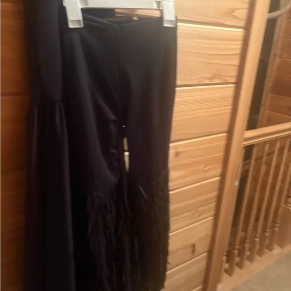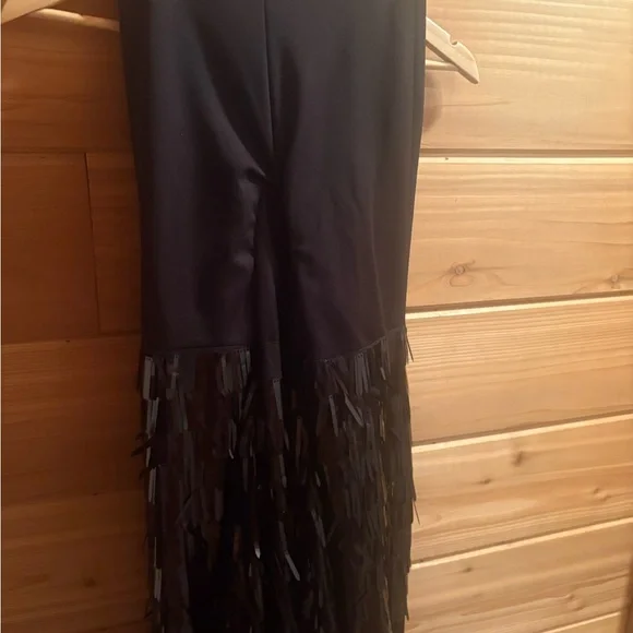 ELEGANT BLACK 2 PIECE FUN FASHION. WITH LONG CAPE AND SPARKLY PANTS