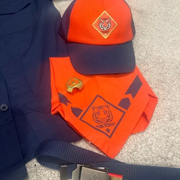 Cub Scouts Uniform- TigersIncludes: Shirt, cap, neckerchief, slide, & belt.Condition: Like new, perfect condition.Shirt size : Youth smallCap size : youth S/M