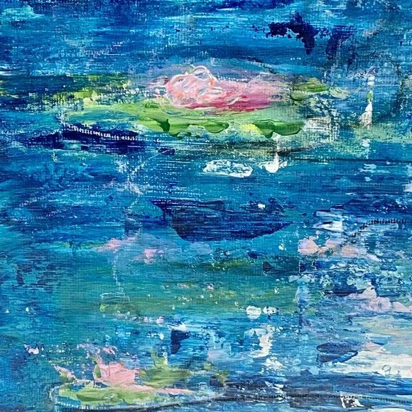 Water Lilies mean beauty, rebirth, peace, essence, and the circle of life, due to the plant’s unique growth needs. This original acrylic abstract was created using professional...