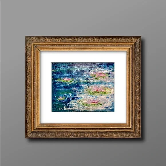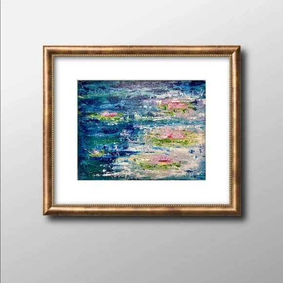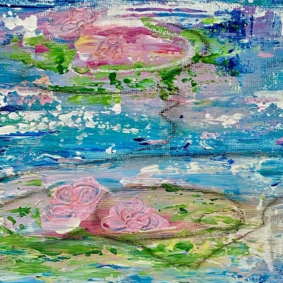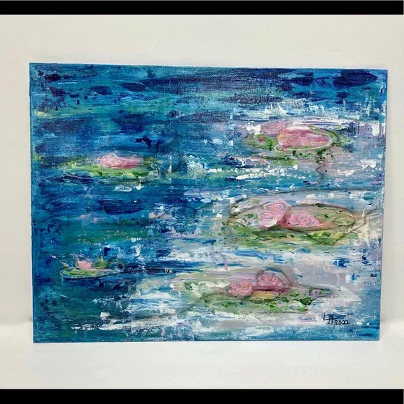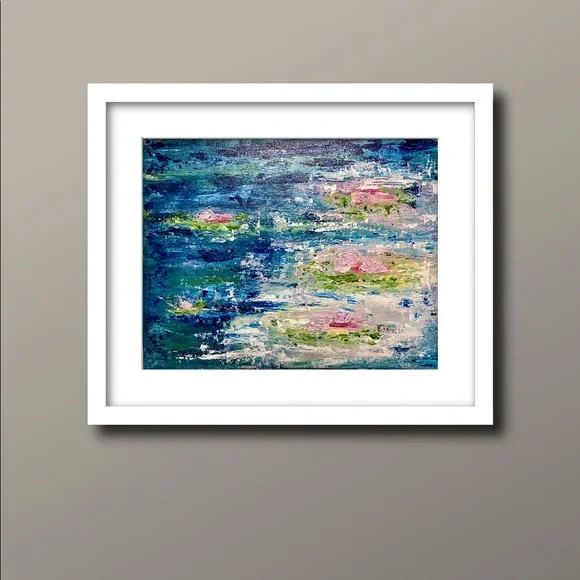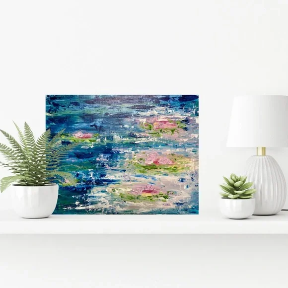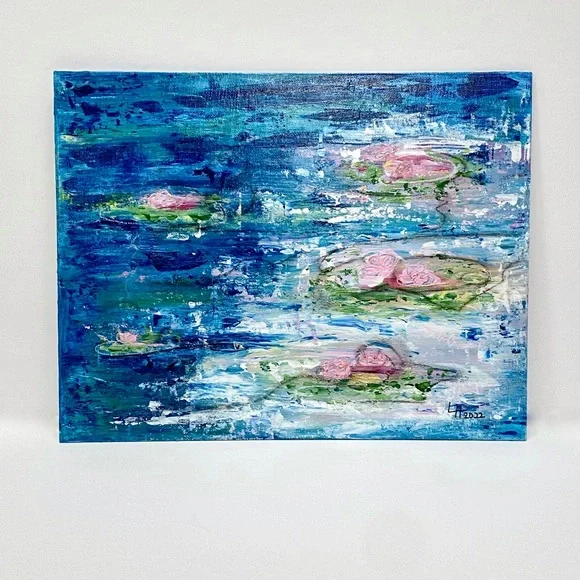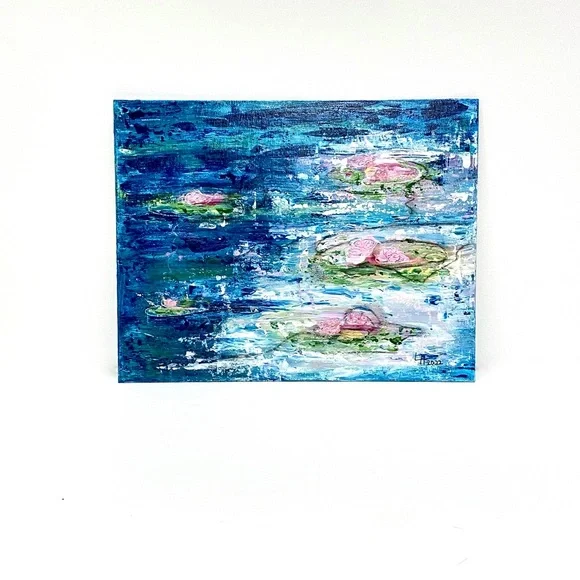Original “Water Lilies” Acrylic Abstract Art on 11 x 14 Canvas Panel