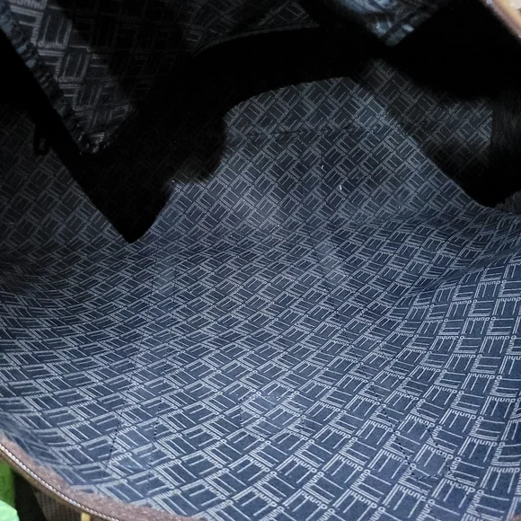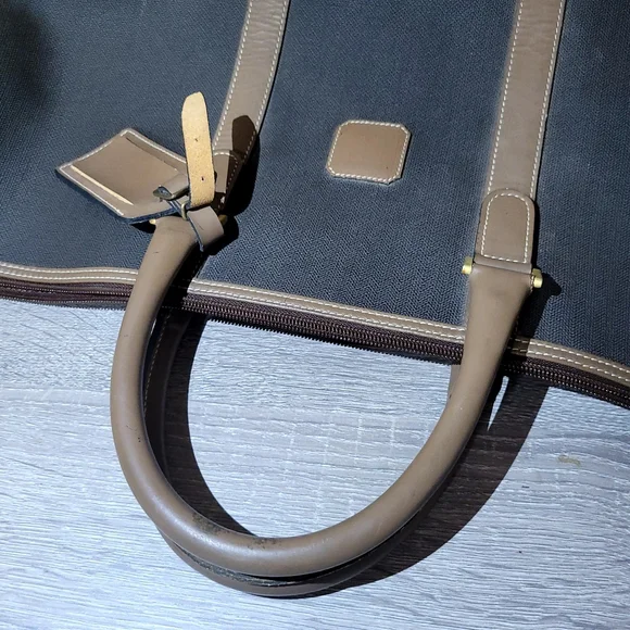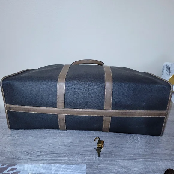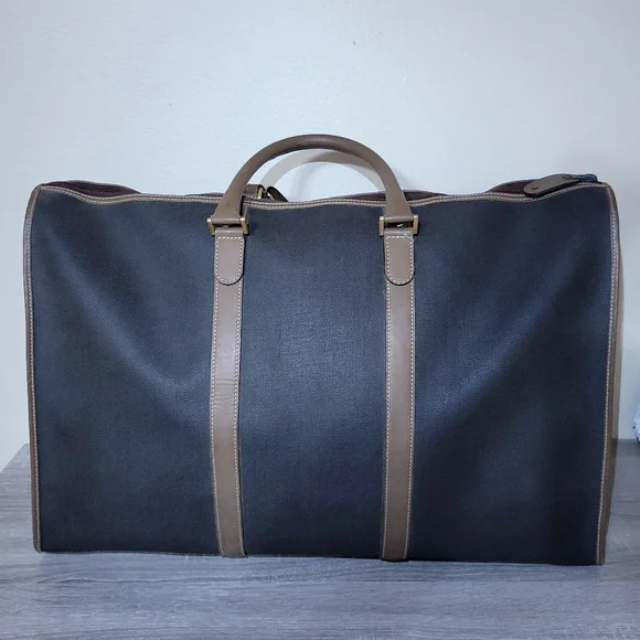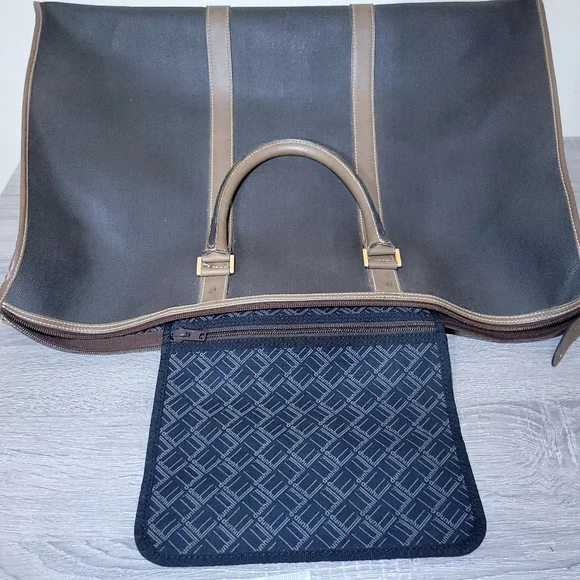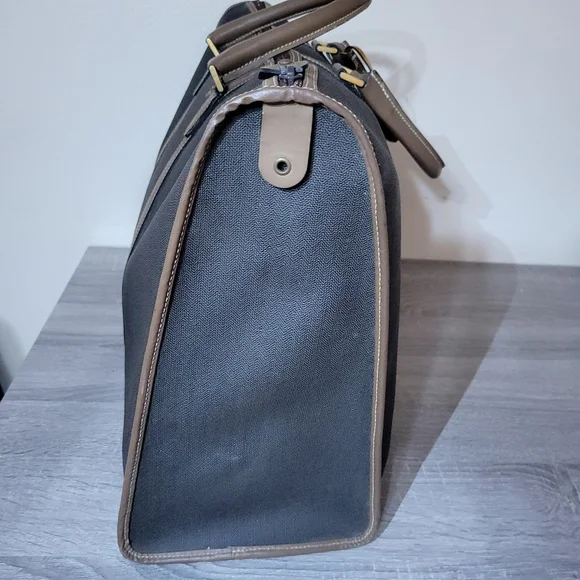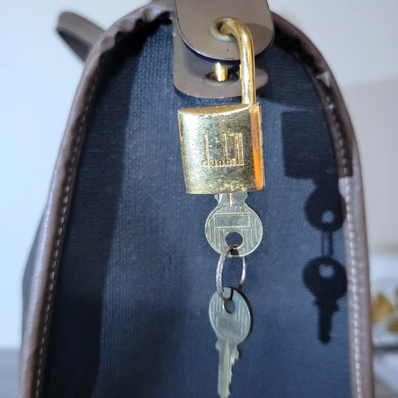 This listing is only for the big size. You can buy the set for $600.Description:Dunhill bag features durable black canvas exterior with brown leather trim, leather luggage tag and gold tone padlock with 2 set of keys. Zip top opens to logo lined textile interior with zip pocket. Gold tone hardware. PVC x leather Width: about 7inchHeight: About 13inchLength: about 21inchHandle: approx. 4.1inchInterior zip pocket x1Color: Dark Gray, brown, and gold Accessories: Name tag Cadena, Loc x1 and Key x2Zoom pictures for details.Questions? Leave a comment below!