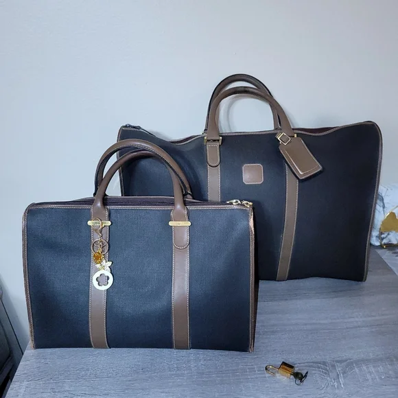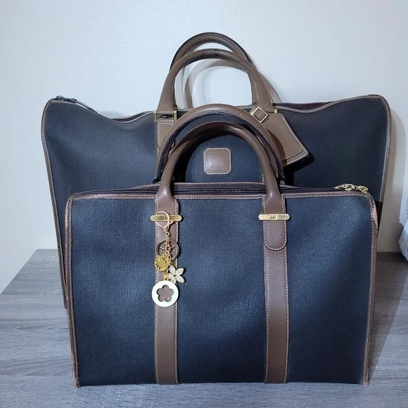 This listing is only for the big size. You can buy the set for $600.Description:Dunhill bag features durable black canvas exterior with brown leather trim, leather luggage tag and...
