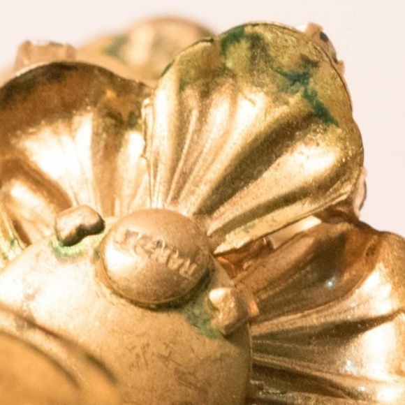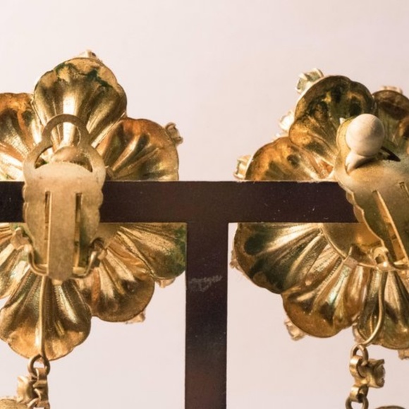 Coco Style Gilt Gold and Rhinestone Stamped "France" Drop Earrings.Beautiful Drop Floral Shape.The Rhinestones adorn the Gilt Gold Earrings looking as if petals are exploding in...