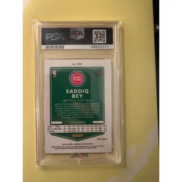 2021-22 Donruss Optic Saddiq Bey Photon Prizm Case Hit SP #126 PSA 10 POP 1