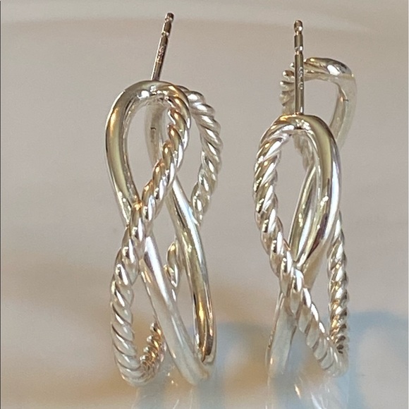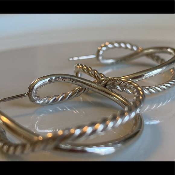 100% authentic David YurmanSmooth high polish twisted with DY classic cable design34mmEarrings do not come with original DY backs but come with NEW sterling silver jumbo backs