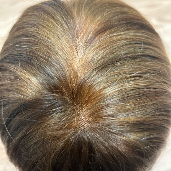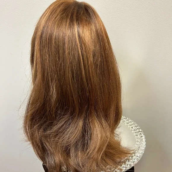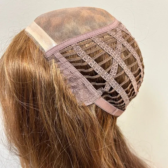 NIBLace front From Crown 20”Back straps to adjust sizeColor mix of light golden brown/light auburn frosted