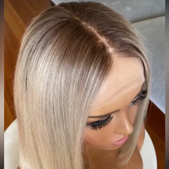 Blonde bob brown root human hair wig