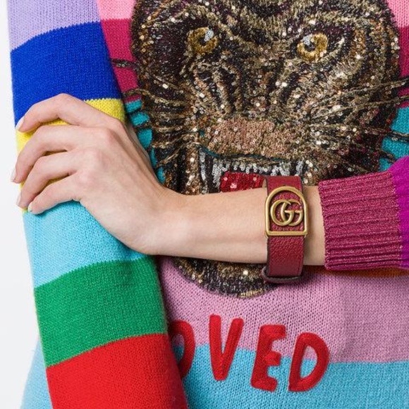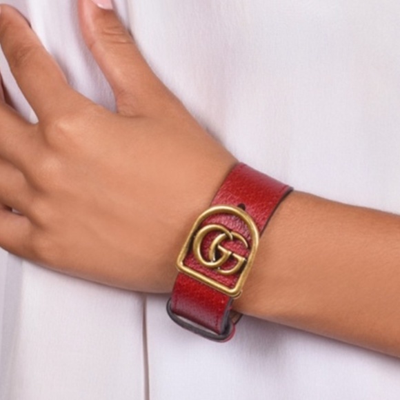 NWT~~Marmont Double-G Leather Belt Bracelet Red (Classic Red color most accurate) Size: Large*PRICE IS FIRM/NO OFFERS*Includes tag + ORG. GIFT RECEIPT, Box(LOVE THIS PIECE~I own it and wear often!)The Double G is reinterpreted for Cruise with a new framed design.Two iconic Gs in aged goldtone plate mark smooth, durable pigskin leather Adjustable Closure/Pin Holes: 3 Holes @ 7.5"-8.5”; Total length 11.25; 1” Width Made in Italy Style Number: 5715933