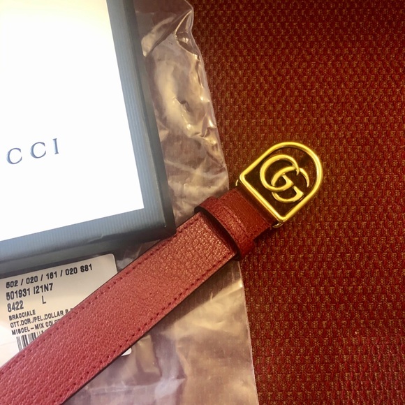 NWT~~Marmont Double-G Leather Belt Bracelet Red (Classic Red color most accurate) Size: Large*PRICE IS FIRM/NO OFFERS*Includes tag + ORG. GIFT RECEIPT, Box(LOVE THIS PIECE~I own...