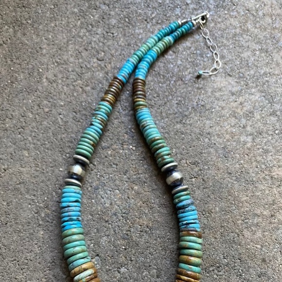 Sterling Silver Graduated Blue Green Turquoise Bead Necklace. 18 inch