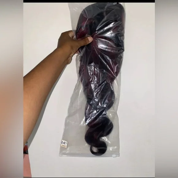 24 Inch burgundy/ black highlighted Lace Frontal Wig-180% density- Custom color- Transparent lace-100% human hair- Comes with combs- What you see is what you’ll receive- Comes with a free gift
