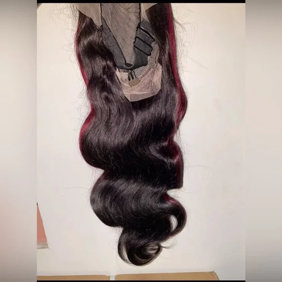 24 Inch burgundy/ black highlighted Lace Frontal Wig-180% density- Custom color- Transparent lace-100% human hair- Comes with combs- What you see is what you’ll receive- Comes...