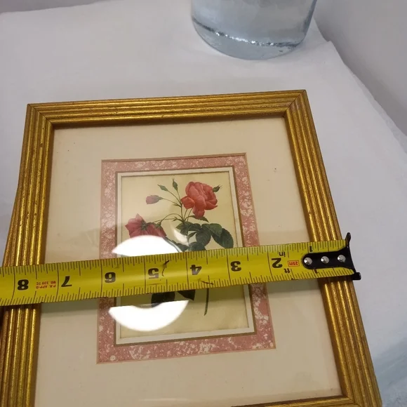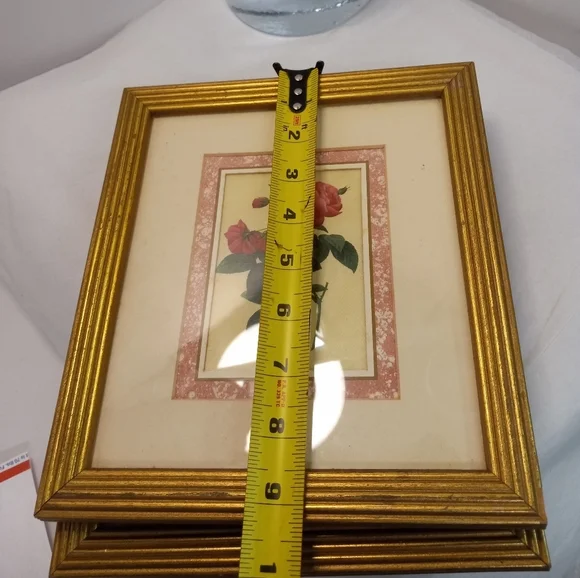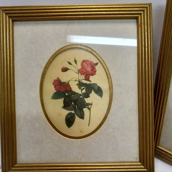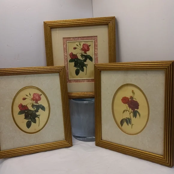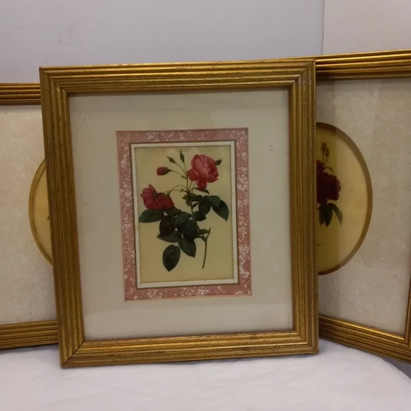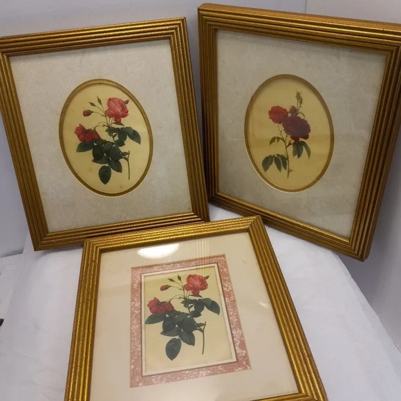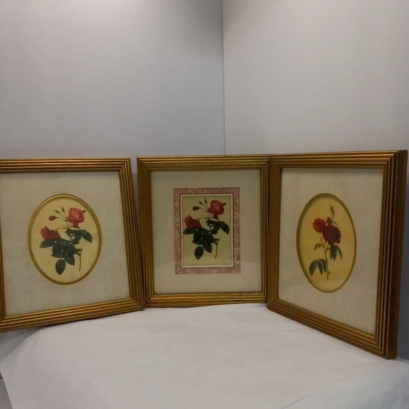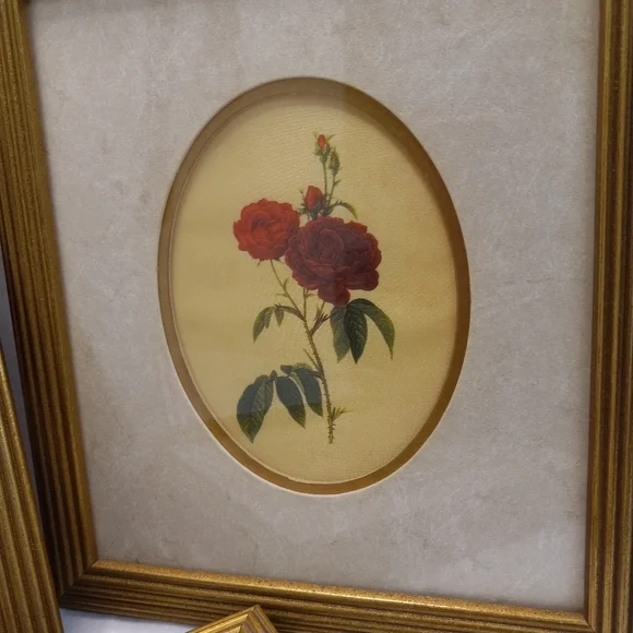 3 Silk Art Red Roses Buds Botanica Print Wood Framed Matted Vintage Collectible