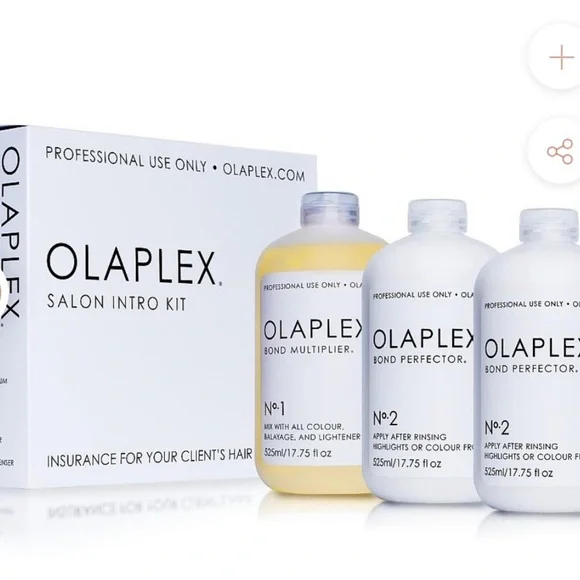Authentic & Sealed Olaplex Salon Intro Kit. Condition is "New with box".Steps 1 & 2 of the revolutionary, 3-step OLAPLEX professional system in a salon introductory kit. OLAPLEX lets you lighten your client’s hair to levels never thought possible before, without compromising the integrity of the hair. Salon Intro Kit is perfect for in-salon use for up to 140 applications. •(1) 17.75oz. Olaplex Bond Multiplier No. 1•(2) 17.75oz. Olaplex Bond Perfector No. 2