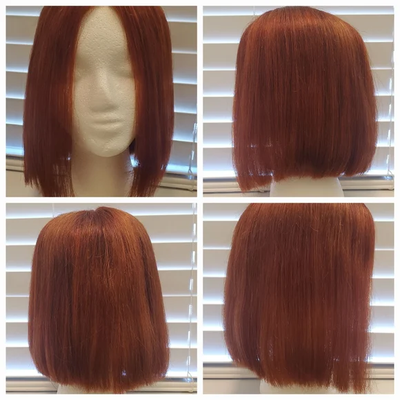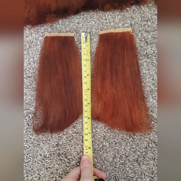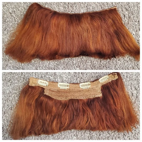 Bundle of Hidden Crown Original Topper and Luxy Halo. Real human hair. Topper and halo were platinum blonde when purchased and were professionally custom dyed to a dark copper color. Hair was then cut into asymmetrical blunt blob. Hair is in great condition, well cared for, freshly washed and conditioned. Please see pictures for measurements. Hair looks extremely natural. I used everything to cover up my pixie grow out and received compliments every time I wore these. Last two pictures are me wearing everything pictured. *Please note that the color can vary from dark to light in some areas, giving it a dimensional copper color. The right single extension is lighter in color at the bottom. If the hair is tucked behind your ear, you cannot tell. Could also dye it/tone it.Topper retails for $572.Halo retails for $205+.Reasonable offers welcome.First time buying on ? Use my code B_KIRKPATRICKand get $10 off!