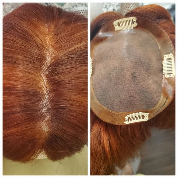 Bundle of Hidden Crown Original Topper and Luxy Halo. Real human hair. Topper and halo were platinum blonde when purchased and were professionally custom dyed to a dark copper...