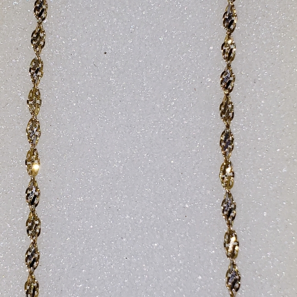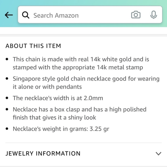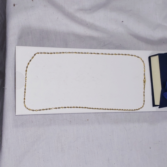 I bought this in March for my mother to wear her gold cross on but the chain was too thick for it.Lockdowns started about the same time& w/ everything going on I missed my window to return.Just trying to recover some of the cost.14k yellow&white gold,20" long 2.0mm thick,Singapore chain from the very reputable Jewlery Affairs New York.Never worn.Last 3 photos are the actual Amazon listing.Reasonable offers welcome.