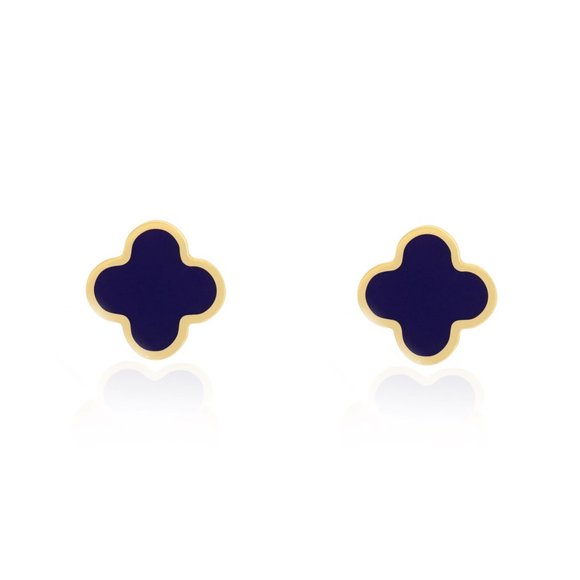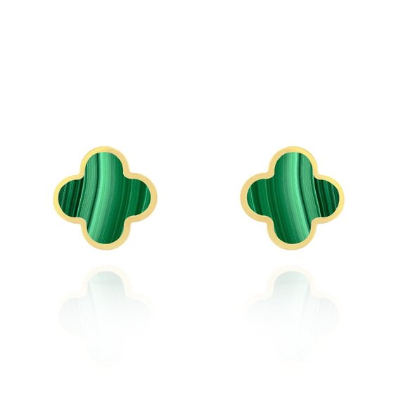 14kt yellow goldGems: malachite, onyx, mother of pearl or lapisClover size: 15mmClosure: push & back