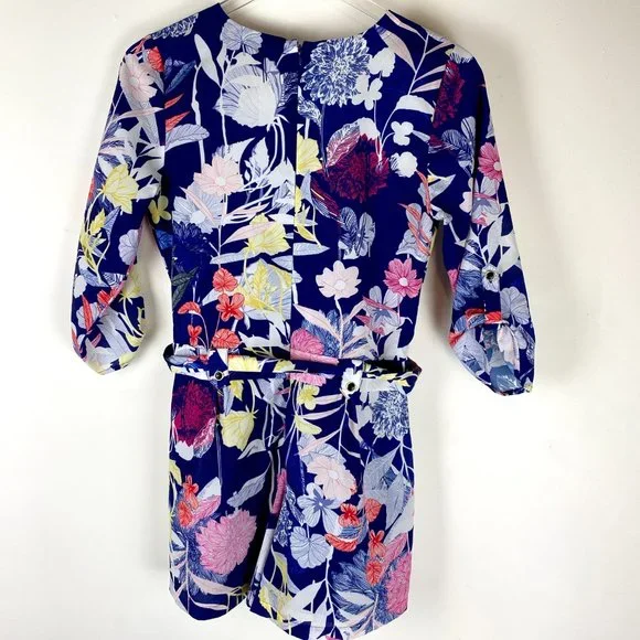 Yumi Kim Liz Romper Floral V-Neck Belted Tropical Vaca Blue Pink Yellow Size XS