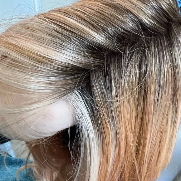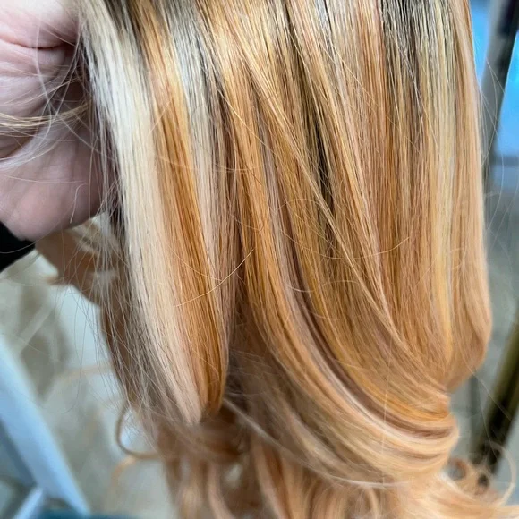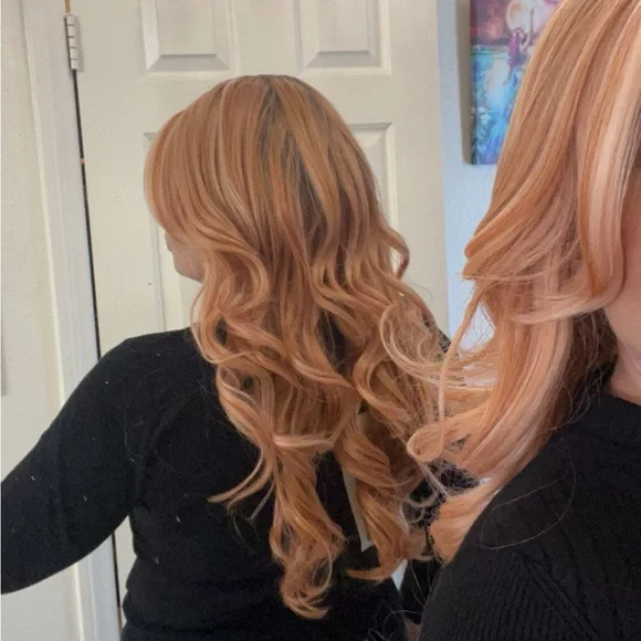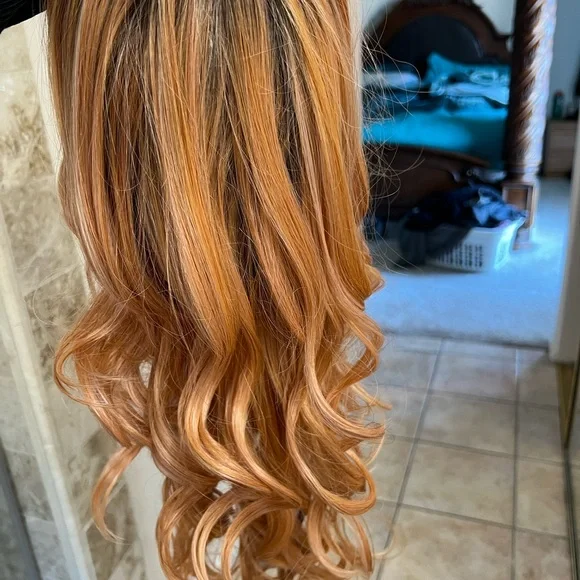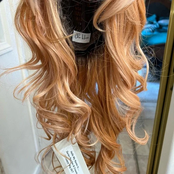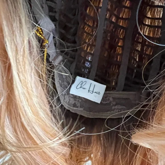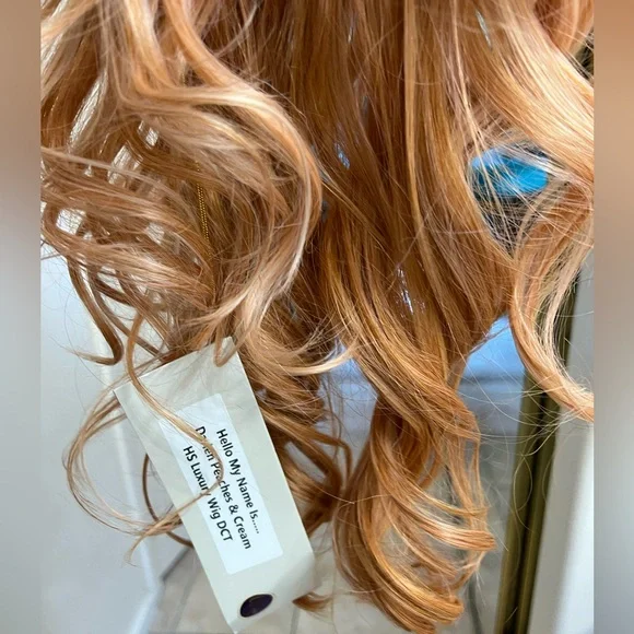 Chic lifestyle Darien wig in peaches and cream color. The same wig as Belle tress pure honey. NWT discontented color strawberry shortcake in Belle tress. Beautiful and hard to find.Heat safe luxury synthetic finers. Fits 18-24”.