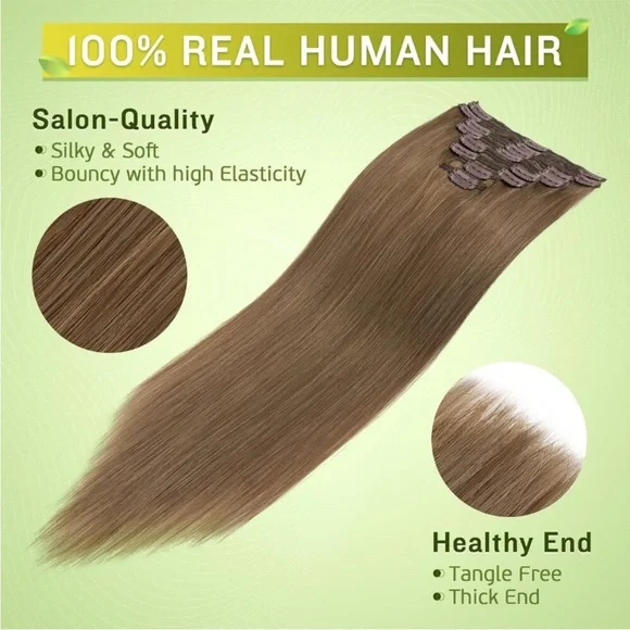 Color: #6 Light BrownMaterial: Clip, Human Hair Extension Length: 22 InchesStyle: StraightARRIVES NEW 100% REAL HUMAN HAIR - natural soft remy human hair extension clip ins. Can...