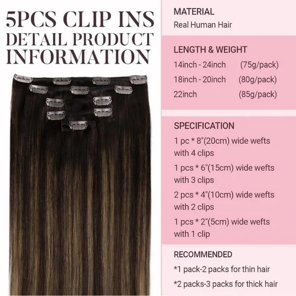 Color: A#2/6/2 Dark Brown Mixed Chestnut BrownMaterial: Human HairExtension Length: 16.00Style: Real Human Hair ExtensionsSize: 16 Inch-75gARRIVES NEW 9A Grade Human Hair Extension: 100% remy human hair soft, silky, and natural. Can be washed, styled, and dyed . Test on a small section first. With good care, it lasts 2-3 months, providing long-lasting beauty Hand-Sewn Weft & U-Shaped Clips: Hand-stitched double wefts offer thick, shed-free hair. Seamless stitching ensures a flat, comfortable fit. U-shaped stainless clips with silicone pads prevent slipping and blend in naturally5pcs Clip-in & Stylish Colors: Set includes 5pcs.Weights: 14 & 16", 18" & 20"´, 22". Weft widths: 81*1, 51*2,2"*2. Available in balayage, ombre, and solid colors, ideal for daily wear or special eventQuick and Easy Wear: Clip-ins take 8-10 minutes to apply and 3-5 minutes to remove. Style before clipping and blend with your hair. Thick hair: use 2-3 packs for length, 1-2 for thickness. Thin hair: use 2-3 packs for thickness, 1-2 for lengtColor Options to Perfect Hair Match: Colors may differ due to monitor settings and lighting. We offer color matching services if you need help choosing the perfect shade to blend seamlessly with your hairREAL HAIR EXTENSIONS CLIP IN HAIR EXTENSIONS | TAPE IN HAIR EXTENSIONS SEW IN HAIR EXTENSIONSPRO HAIR EXTENSIONS