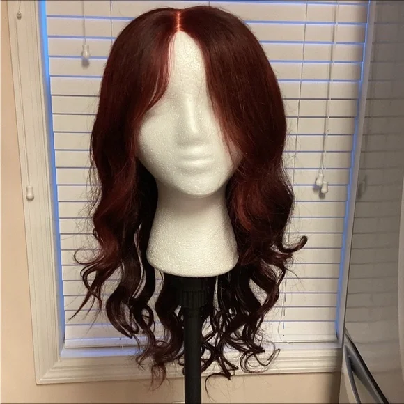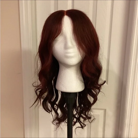 New! Absolutely gorgeous wig! Purchased from Wigginit Wigs! Lightweight wig. 16” wig. Two toned deep red voluptuous curled unit. 100% human hair wig, hand dyed, hand sewn to...