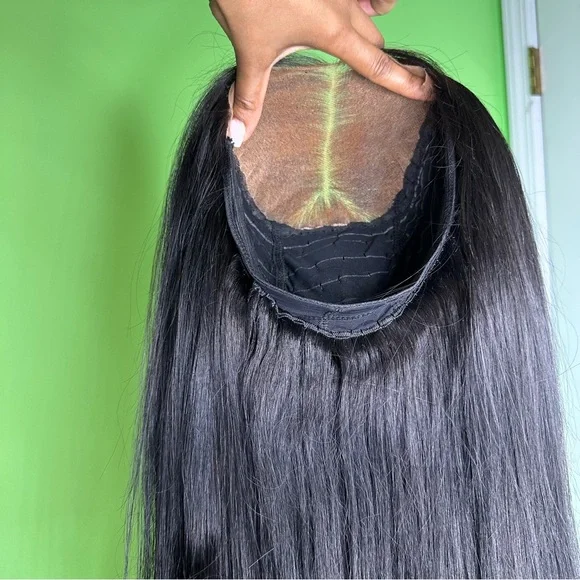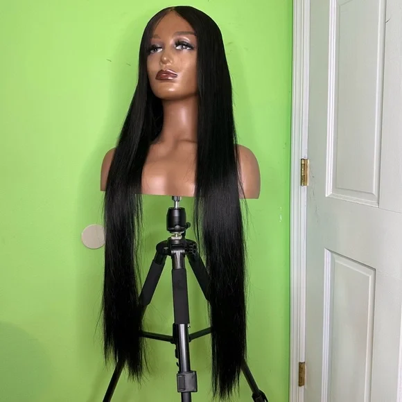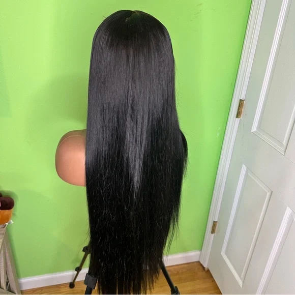 Beautiful straight wig, flat ironed straight, 6x6 closure , customized , transparent lace , hand made. FIVE(5) bundles were used to create this beautiful wig. Wig has been DYED JET BLACK. Legnth: 29-30 inchesDisclaimer** Wig has been used!! The lace has already been cut.Wig can be washed , dyed , curled, straightened100% VIRGIN HUMAN HAIR . What you see is what you get. I price the wigs accordingly.