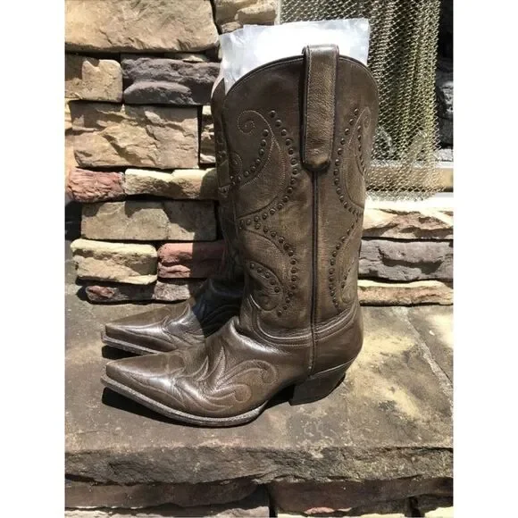 Corral Boots Brown Leather Concho Studs Western Cowboy Boots Women’s Caborca